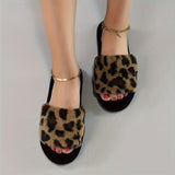 Womenâs Warm Fluffy Leopard Slippers â Soft Faux Fur Indoor Slides