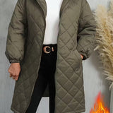 Women’s Warm Quilted Hooded Zip-Up Coat – Long Sleeve Winter Outerwear