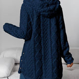 autumn winter   jacquard plush hooded cardigan coat navy blue color 3