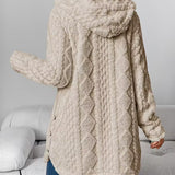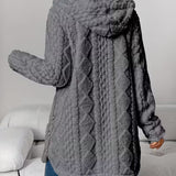 autumn winter   jacquard plush hooded cardigan coat grey 4